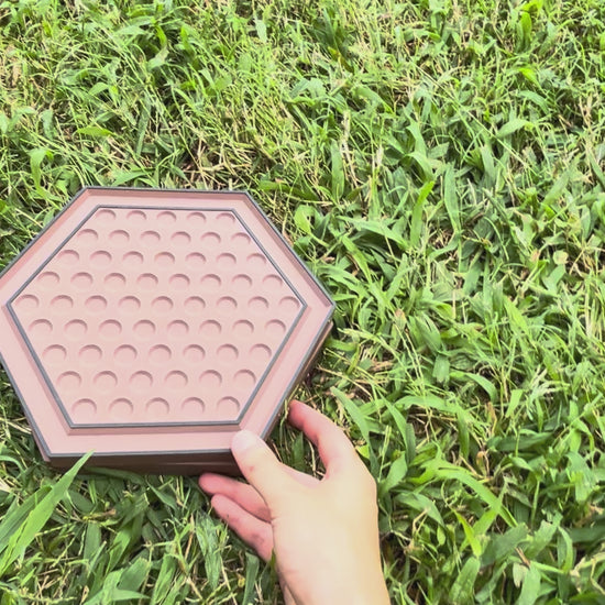 The board is a self-contained game set that includes two copies of the rules, as well as all of the pieces, two spares of each pawn. The board and its pieces are magnetic, which makes it a great travel set. It also enables you to hang the board on the wall with the pieces on it, which is why there are holes on the back of the board to mount onto a nail. The game requires no sight to play.