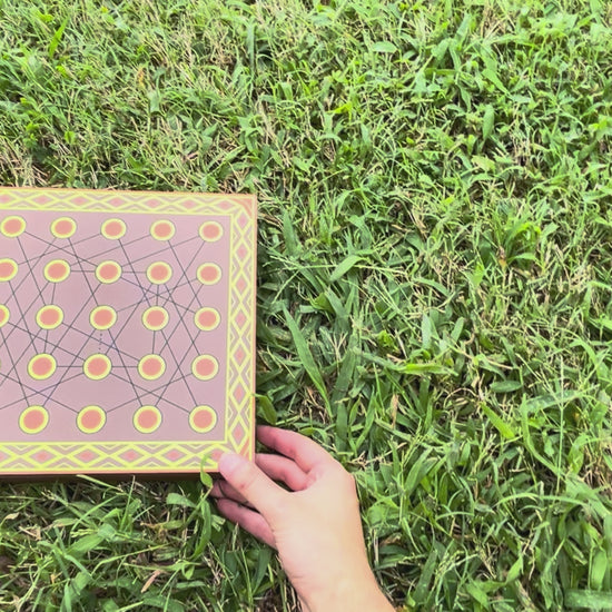 Jassir/Jarmo originates from Mongolia and was said to be a favorite of one of Genghis Khan's grandson's during his own conquests. The game appears simple, but is actually striking complex due to the seemingly random interconnections between the available spaces on the board.