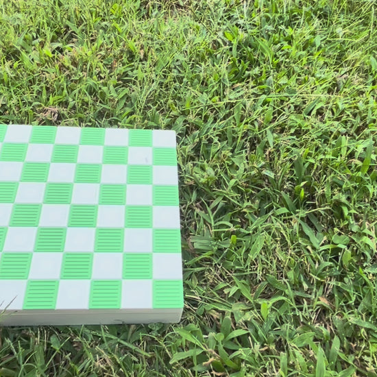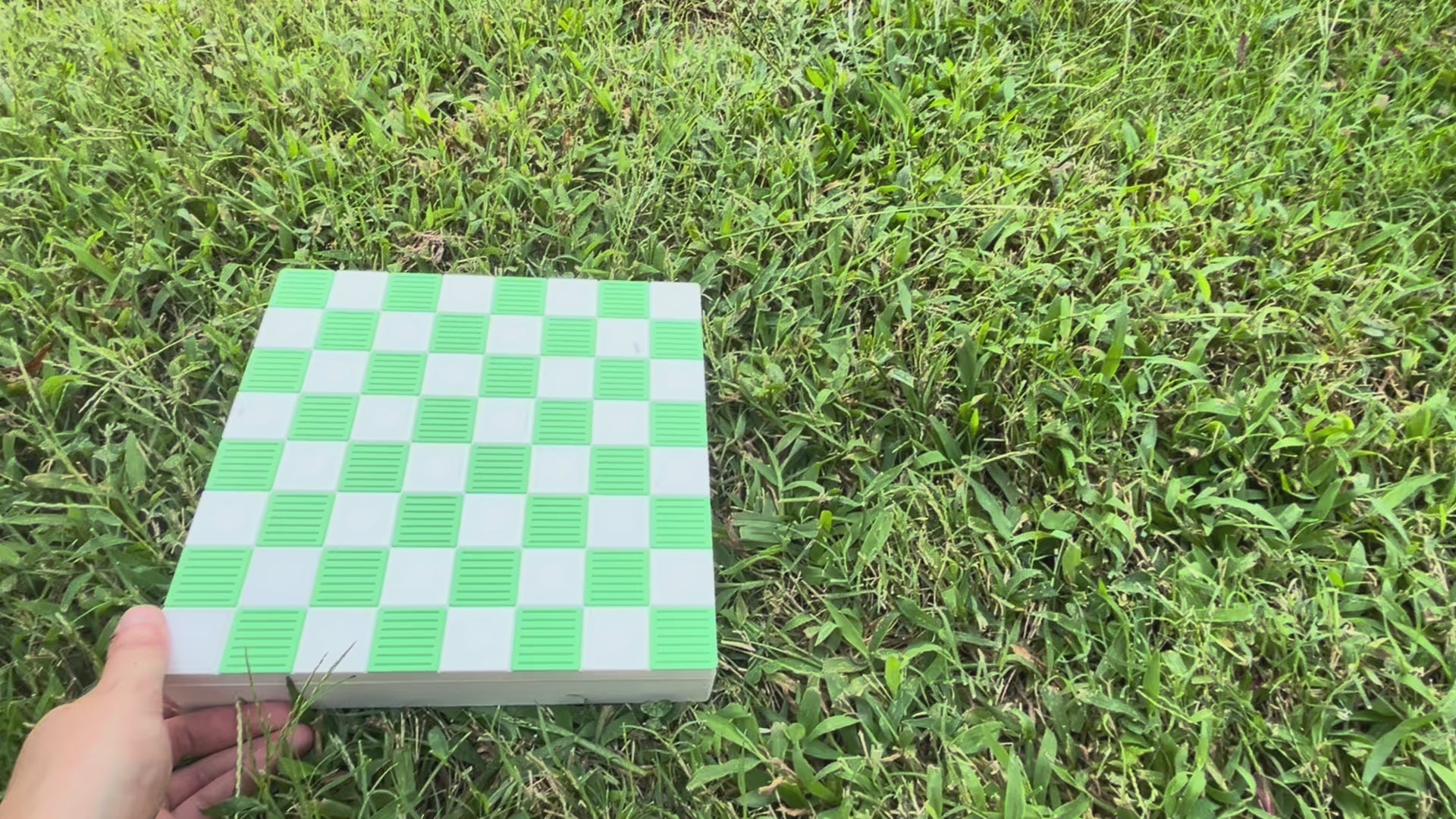 Magnetic chess pieces designed to be distinguishable by touch are stored inside of this new design with a tactile playing surface. The top turns and opens up to reveal the pieces inside, but is held snugly together by the magnetic board.