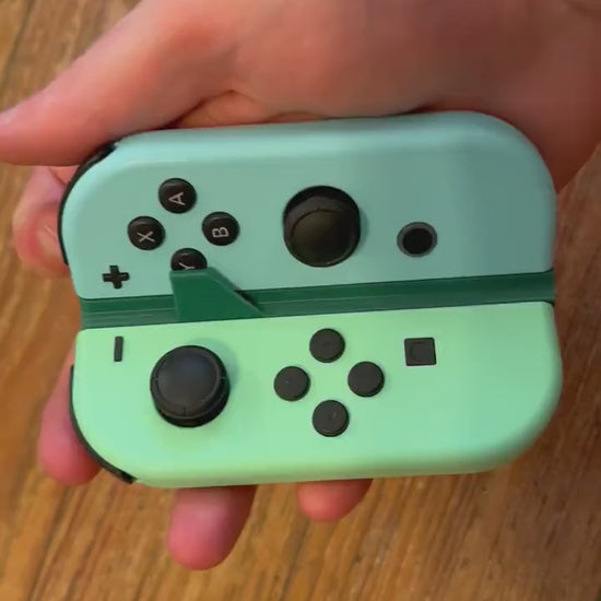 This new design makes it possible to use both of your Joy-Cons with one hand. With a few different ways to grip it, you can find the best way to play your games with one hand. It has a small extender on the Y button so you can press X, Y, A, and B without having to move your thumb from the left stick (with a little practice).